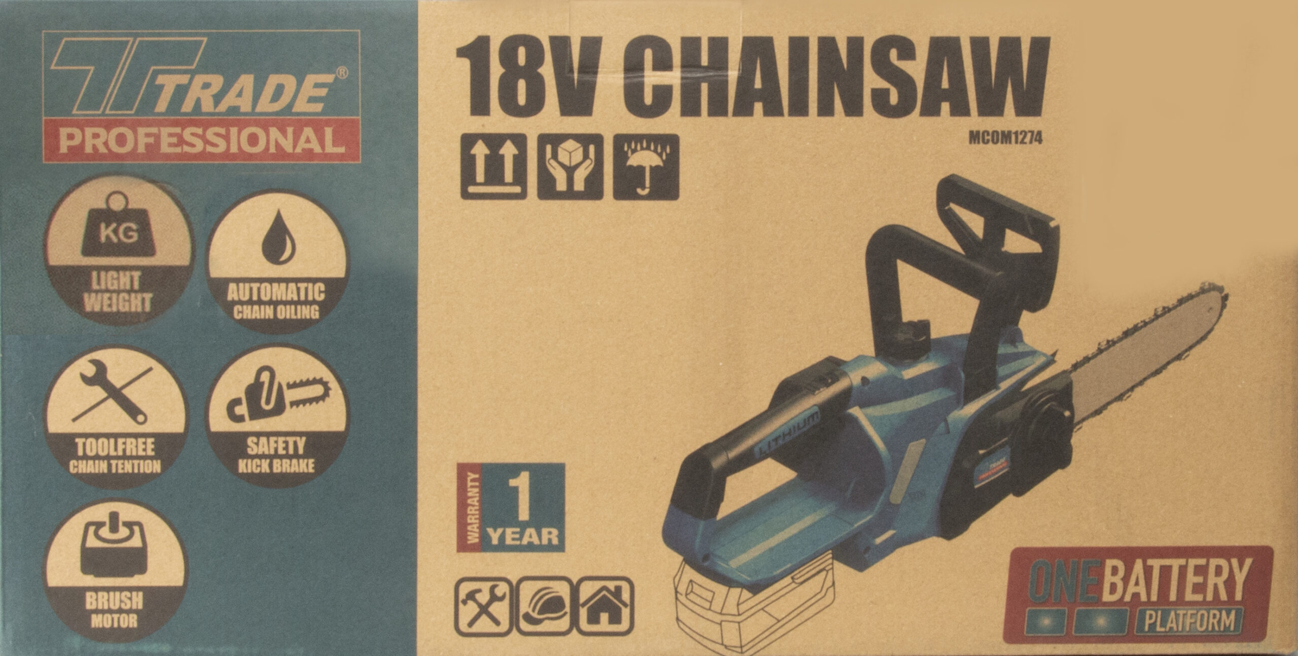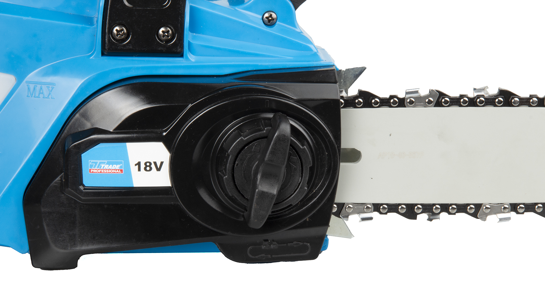The ultimate solution for general maintenance tasks! The Trade Professional 18V Chainsaw has a 10” bar of 250mm in length. At 2.9kg, the compact and lightweight design ensures great navigation and less user fatigue. Built-in safety features such as the chain brake, prevent injuries, so the chainsaw can be used comfortably.