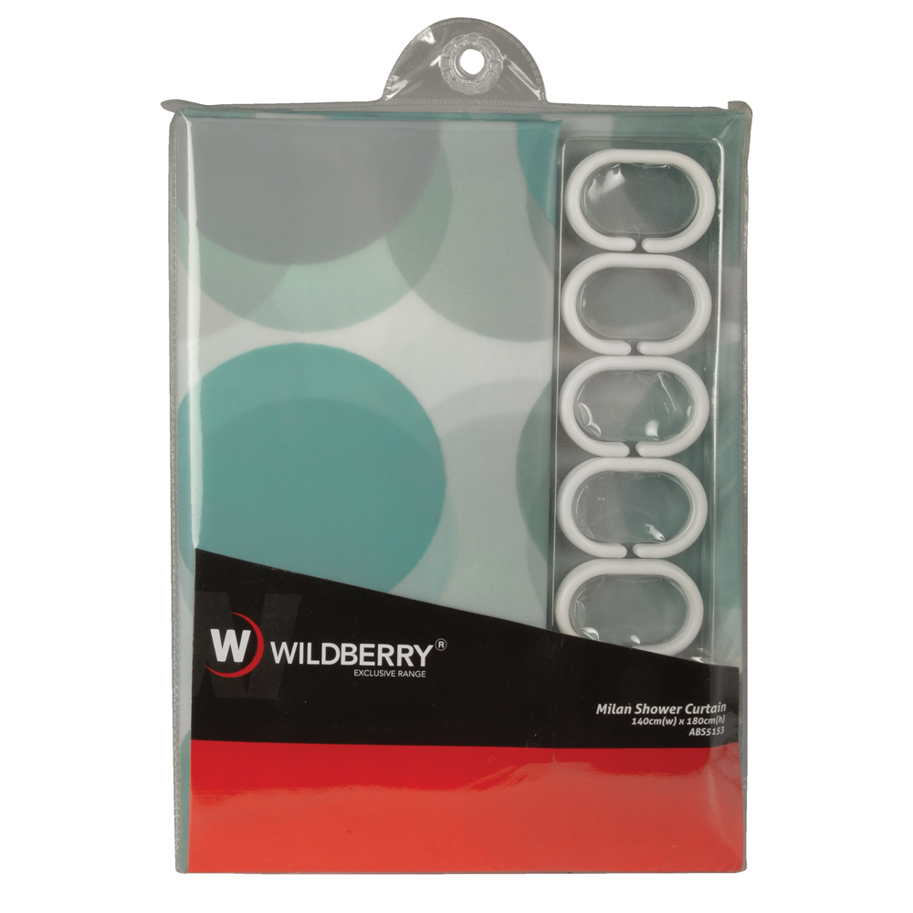 Keep your bathroom clean and dry with style using the Wildberry Milan Shower Curtain. The shower curtain has a fun design of blue colour circles to create a mixture of a modern and retro-styled shower curtain. Manufactured from durable and quick-drying fabrics, the curtain is easy to clean with a soft cloth and non-abrasive cleaning agent. To maintain the modern look of the curtain, do not use ammoniated detergents or other abrasive cleaning agents. The shower curtain is easy to install, resulting in a fun statement piece that is sure to add some personality to your bathroom.