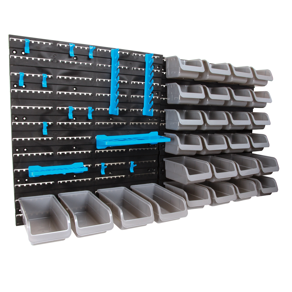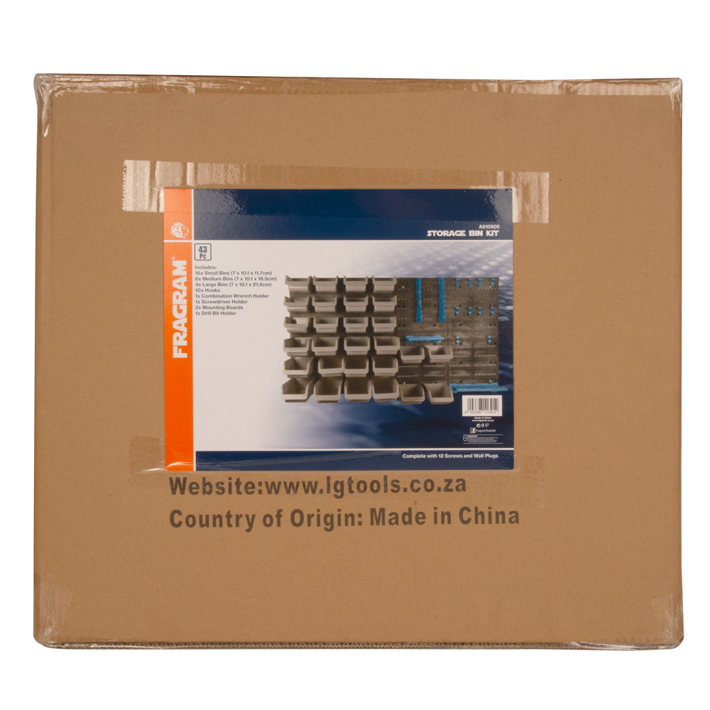Do you love an organised workspace? We have the solution for you! The wall mounted Fragram 43 Pc Storage Bin Kit is the ideal storage solution that provides easy access while making the most out of your open wall space. Consisting out of 16x Small bins, 8x Medium bins, 4x Large bins, the separate containers conveniently organises your workspace while keeping it tidy and is easy to clean. While the kit is suitable to use in a workshop or home garage, it’s also fit to use at your DIY workstation to hold DIY hobby supplies like jewellery, beads, and many more.